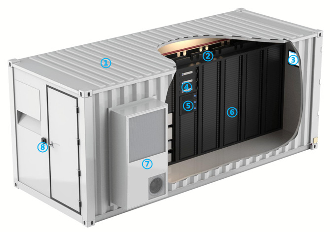 集裝箱內(nèi)部集成機(jī)架、UPS供配電、一體式壁掛空調(diào)、監(jiān)控、布線、安防、消防、照明等關(guān)鍵IT基礎(chǔ)設(shè)施,現(xiàn)場(chǎng)即插即用。
