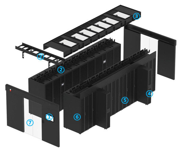 雙排微模塊方案采用兼容冷通道封閉或熱通道封閉設(shè)計,并應(yīng)用模塊化UPS和列間空調(diào),兩排機(jī)柜間通過頂部線槽連通,組成高效、靈活、易于管理的雙排微模塊解決方案,完全模塊化設(shè)計的組件便于快速搭建和后期無縫擴(kuò)展。