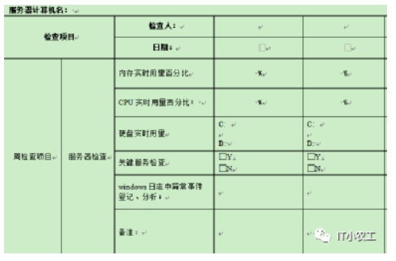 IT人員負責完成日常檢查,并填寫“機房日常巡檢記錄表”。如發(fā)現(xiàn)異常情況,應(yīng)記錄在“備注”欄內(nèi)。